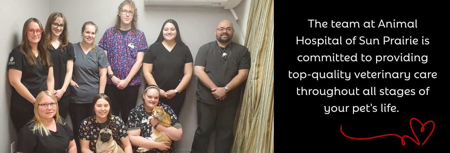 Animal Hospital of Sun Prairie provides quality veterinary care for dogs and cats in Sun Prairie, Wisconsin and the surrounding communities. Our modern and inviting hospital boasts superb veterinarians and caring support staff that are dedicated to our patients, clients, and community.